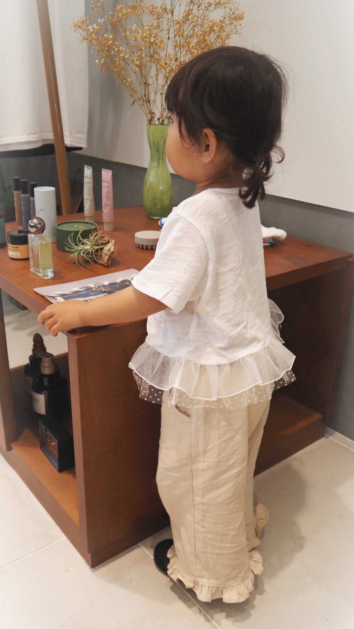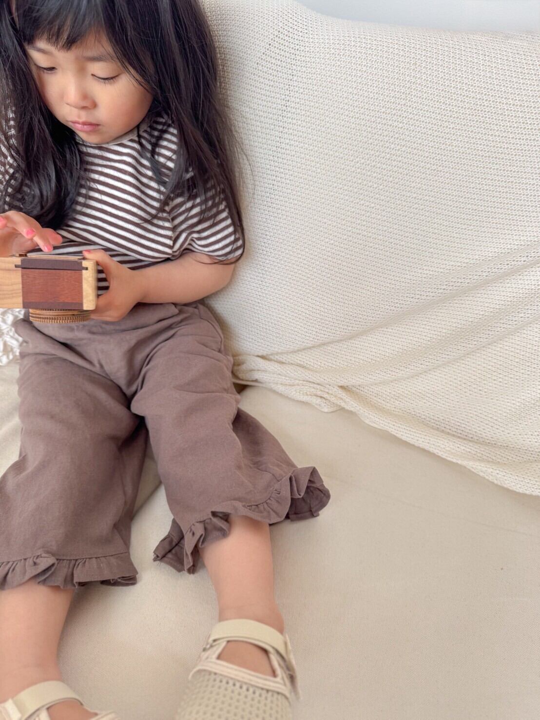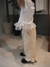 naturalな風合いとやさしい肌ざわりが魅力のcotton素材のfrill pants.