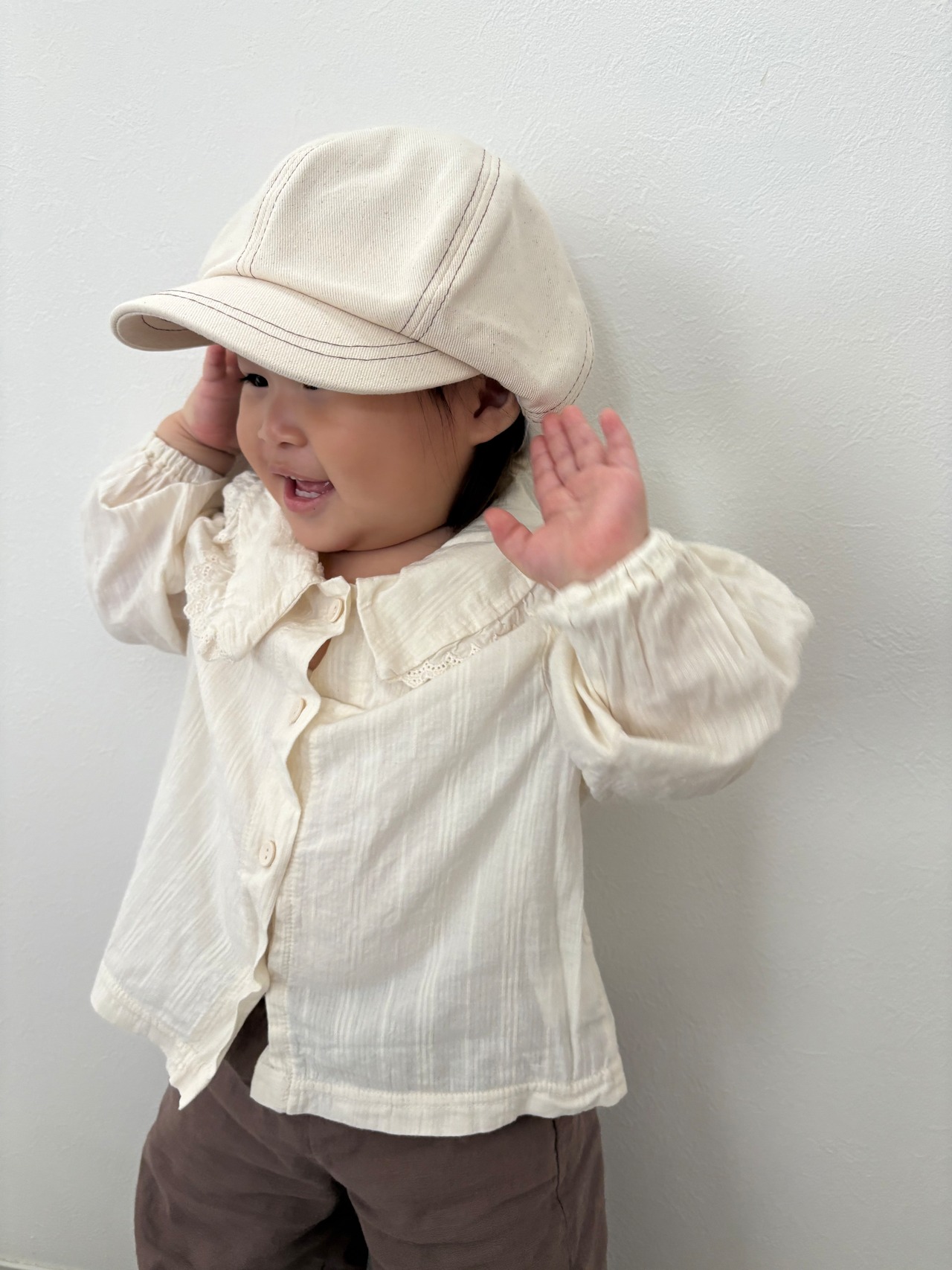cotton生地の淡いcream colorにツブツブが最高にかわいいcasquetteෆ ̖́-